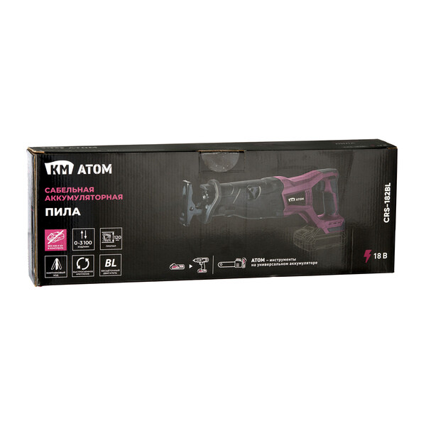 Этот инструмент входит в состав аккумуляторной платформы КМ АТОМ. Все инструменты и садовая техника данной серии работают от универсальных аккумуляторов КМ АТОМ. Аккумуляторная сабельная пила предназначена для продольного, поперечного, под углом и фигурного пиления заготовок из дерева, фанеры, ДСП, пластмасс, металла и пенобетона (при установке соответствующего полотна). Зарядное устройство и аккумуляторная батарея в комплект не входят.