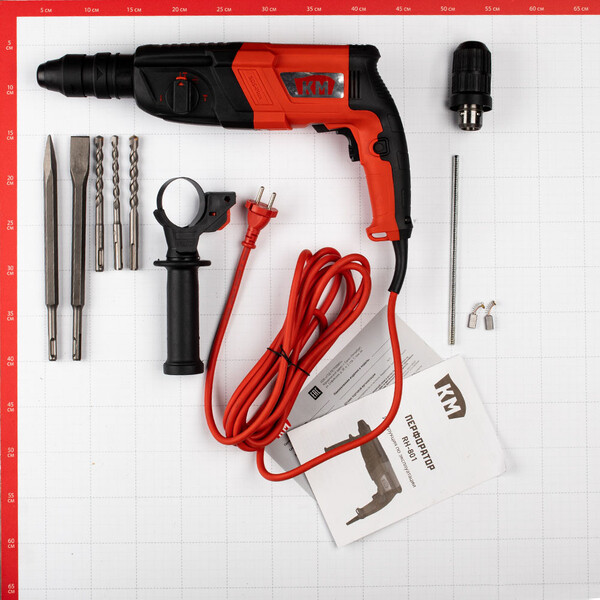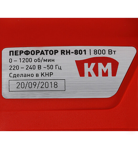 Перфоратор КМ 800 Вт предназначен для сверления, ударного бурения и долбления в таких материалах как бетон, дерево, металл.