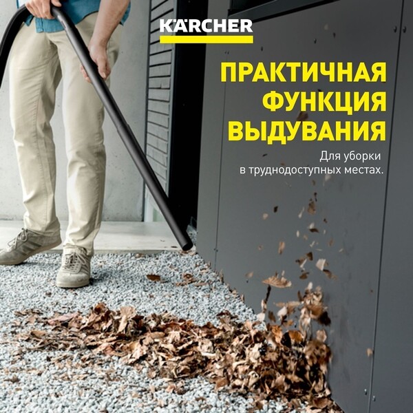 Компактный хозяйственный пылесос начального уровня WD 2 Plus V-12/4/18 впечатляет 12-литровым пластмассовым мусоросборником, 4-метровым кабелем, всасывающим шлангом длиной 1,8 м и наличием функции выдувания.