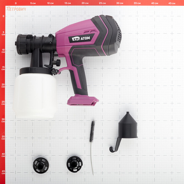 Этот инструмент входит в состав аккумуляторной платформы КМ АТОМ. Все инструменты и садовая техника данной серии работают от универсальных аккумуляторов КМ АТОМ. Перед применением краскопульта изучите и строго следуйте инструкции производителя ЛКМ. Краскопульт предназначен для нанесения красок, эмалей, лаков, грунтов, составов для обработки древесины и других ЛКМ на органической и водной основе. Подходит для внутренней и наружной окраски различных поверхностей. Внимание! Краскопульт запрещается использовать для щелочных или кислотных растворов, легковоспламеняющихся веществ, пищевых продуктов, фармацевтических средств.