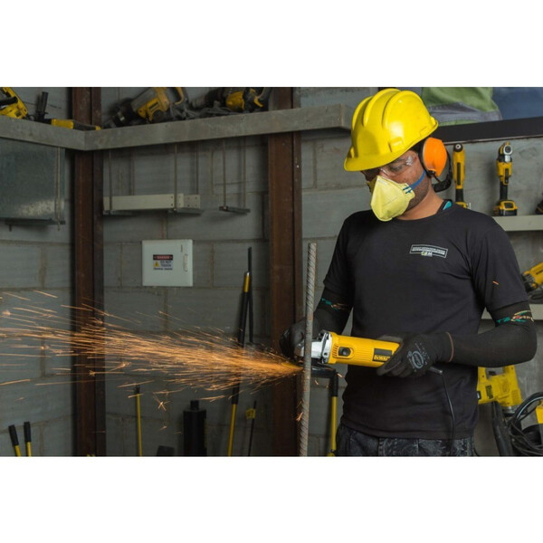 Углошлифовальная машина Dewalt DWE4115 — компактная легкая болгарка для профессионального использования. С ее помощью обрабатывают металлические и каменные материалы/изделия. Помимо шлифовки поверхности, можно задействовать инструмент для полировки или резки. Пользователь имеет возможность установить дополнительную рукоятку с любой удобной для него стороны.