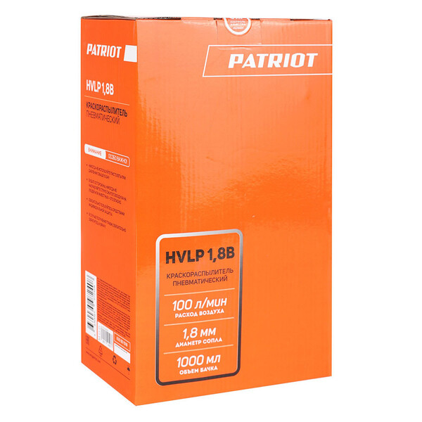 Профессиональный пневмокраскораспылитель Patriot HVLP 1,8 B для точного и равномерного распределения краски на различные поверхности. Нижнее расположение бачка обеспечивает отличный обзор рабочей области. По сравнению с другими типами краскопультов потери материала на 20% ниже. Регулировка ширины факела и скорости подачи краски дает возможность подобрать оптимальный режим работы для любых поверхностей.
