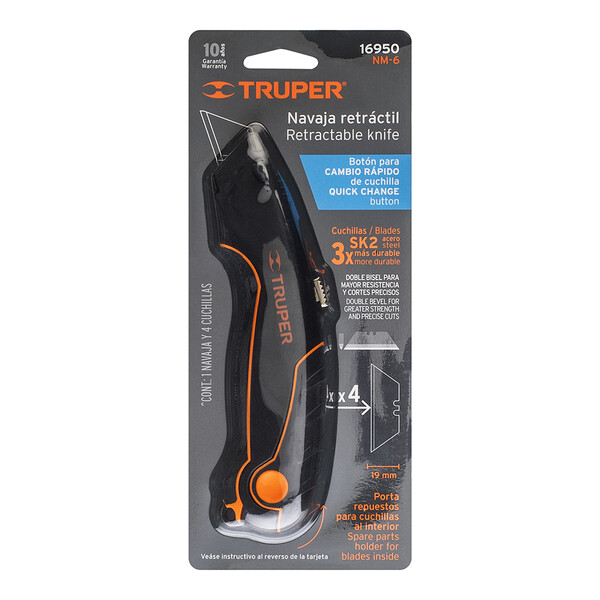 Предназначен для точного разрезания тонких материалов – резины, картона, бумаги, пластика. Трапециевидное лезвие отличается высокой жесткостью, благодаря чему оно очень хорошо режет гипсокартон, позволяет точно прорезать как прямые, так и ломанные линии. Безопасный универсальный нож Truper с трапециевидным лезвием из стали SK-2, 4 лезвия в комплекте, удобный отсек для хранения лезвий. Легкий алюминиевый корпус с резиновыми вставками против скольжения. Удобная система смены лезвий.