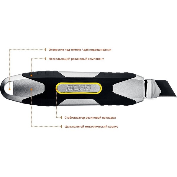 Нож из литого алюминия OLFA MXP-AL для точного и уверенного реза. Корпус из нержавеющей стали надежно фиксирует лезвие, обеспечивая долговечность даже при непрерывном использовании. Острое сегментированное лезвие LBB шириной 18 мм. Оснащен автоматическим фиксатором Auto Lock. Рукоятка с противоскользящей резиновой накладкой компактна и удобна в использовании.
