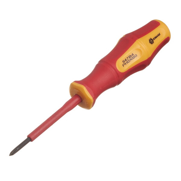 Предназначена для завинчивания и отвинчивания винтов, шурупов и саморезов, находящихся под напряжением до 1000V при проведении строительно-монтажных работ, сборки, разборки, ремонта различных механизмов, узлов и агрегатов. Изготовлена из хром-ванадиевой стали 6150CrV с закалкой рабочей части 51-54HRC. Стержень отвертки дополнительно изолирован. Имеет двухкомпонентную рукоятку, выполненную из маслобензостойких материалов. Шлиц отвертки намагничен для удобного удержания мелкого крепежа.