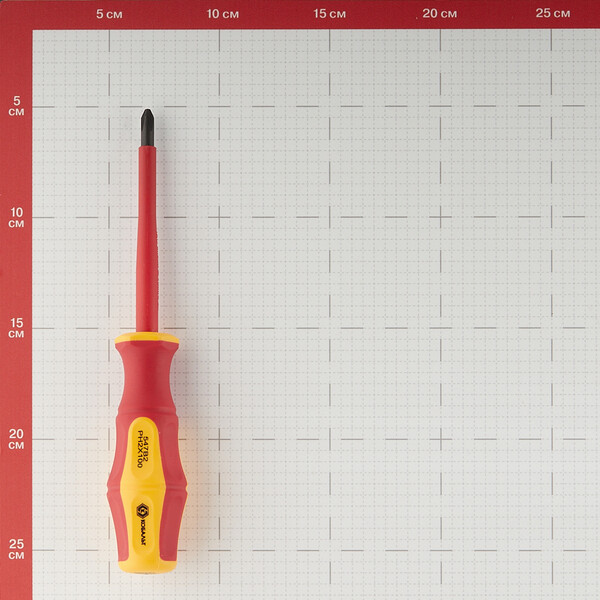 Предназначена для завинчивания и отвинчивания винтов, шурупов и саморезов, находящихся под напряжением до 1000V при проведении строительно-монтажных работ, сборки, разборки, ремонта различных механизмов, узлов и агрегатов. Изготовлена из хром-ванадиевой стали 6150CrV с закалкой рабочей части 51-54HRC. Стержень отвертки дополнительно изолирован. Имеет двухкомпонентную рукоятку, выполненную из маслобензостойких материалов. Шлиц отвертки намагничен для удобного удержания мелкого крепежа.