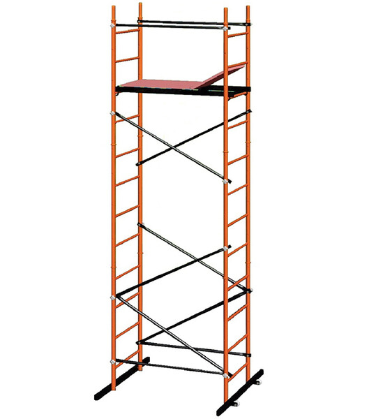 Предназначена для выполнения строительно-монтажных, ремонтно-отделочных работ внутри и снаружи помещений. Быстровозводимая вышка-тура состоит из опорных балок, вертикальных лестниц, связей и рабочей платформы. Колеса, расположенные с одной стороны, позволяют легко передвигать вышку. Рабочая площадка размером 1,2 х 0,7 м (длина х ширина). Благодаря возможности разноуровневой установки рабочей платформы, лестница незаменима при работе на крыльце и на лестничной площадке. В конструкции используются трубы диаметром 32 мм с толщиной стенок 1,2-1,5 мм. Рабочая высота – это параметр, рассчитываемый путем сложения высоты верхней секции лестницы/стремянки/вышки-туры и роста человека с вытянутой вверх рукой (в среднем, два метра). Данная вышка-тура состоит из трех одинаковых секций Н=1,4 м, одного рабочего настила и двух поперечин, которые м...