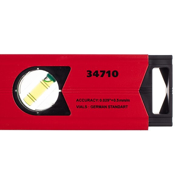 Предназначен для проверки и определения отклонений поверхностей и различных конструкций от горизонтали или вертикали. Усиленный алюминиевый профиль с ребрами жесткости. Фрезерованная рабочая поверхность обеспечивает дополнительную точность измерения. В подошву уровня встроен магнит для фиксации на металлических поверхностях. Имеет три измерительных глазка для проверки отклонений по горизонтали, вертикали и под углом 45 градусов. В верхней части имеется окошко с зеркальным отражателем, позволяющее снимать показания во фронтальной и поперечной плоскостях.