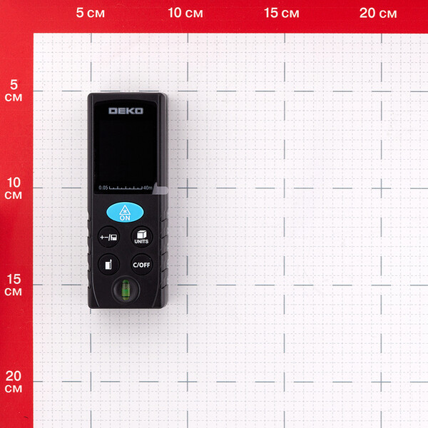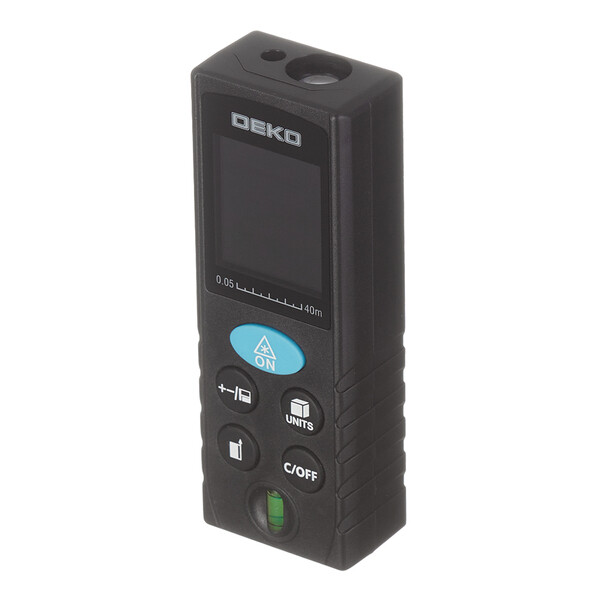 Лазерный дальномер DEKO LRD110-40m служит для измерения расстояния до объекта, не приближаясь к самому объекту. Высокую точность измерения обеспечивает лазер, встроенный в прибор. Максимальная дальность измерения – 40 метров. Единицы измерения – метры, футы, дюймы, кв. метры, кв. футы, кв. дюймы.