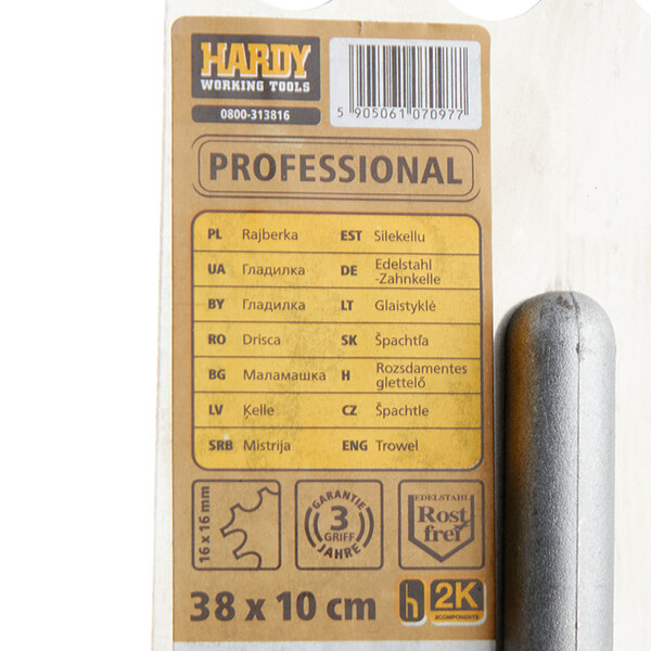 Предназначена для профессионалов, используется для нанесения и разглаживания всех видов масс, клеев и т. д. Применение - отделочный слой, раствор, клей, штукатурка Двухкомпонентная профилированная ручка с нескользящим покрытием обеспечивает хорошее сцепление и идеальный комфорт во время работы; высококачественная нержавеющая сталь, очень легкая. Размер зубьев 16 мм.