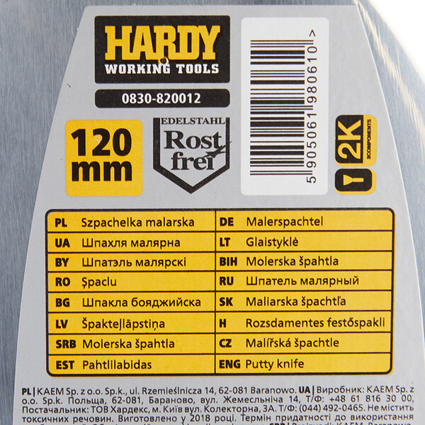 Шпатель малярный Hardy 120 мм с эргономичной ручкой (0830-820012)