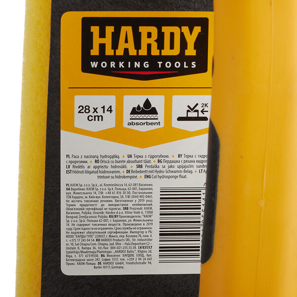 Литая рукоятка из двухкомпонентного материала, с основанием для крепления рабочей поверхности, придает дополнительную гарантию качества, повышая срок службы изделия. Рукоятка не скользит в руке. Поролоновая губка с прорезями для мытья плитки после затирки.
