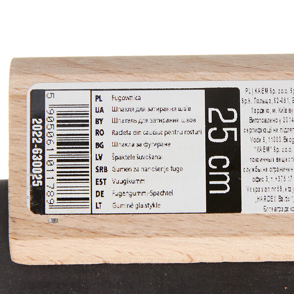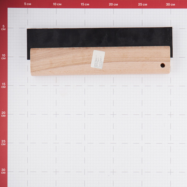 Шпатель предназначен для затирки. Имеет деревянную рукоятку из твердой породы дерева, рабочая поверхность полотна изготовлена из твердой резины.