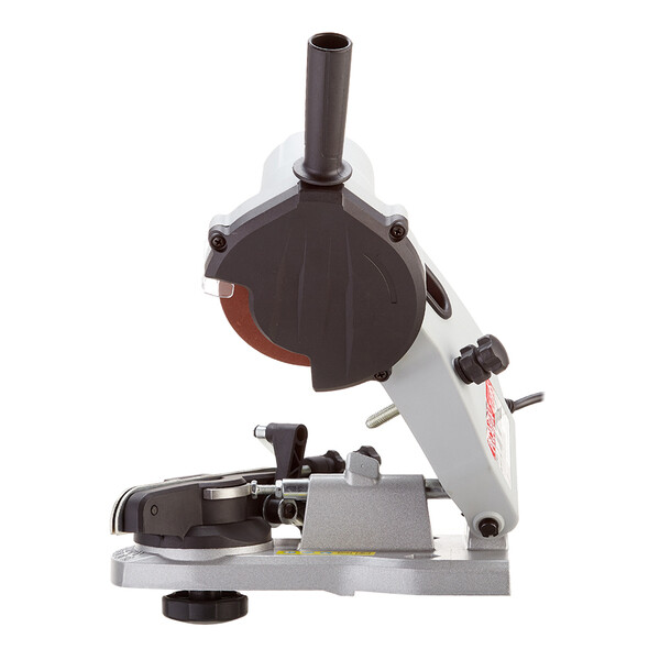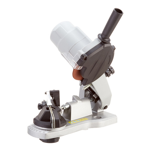 Предназначен для заточки зубьев цепи бензиновых и электрических пил под углом до 30°. Модель отличается мощным двигателем (100 Вт) и шлифовальным диском с диаметром 114 мм. Изменение угла затачивания производится только в выключенном состоянии. Крепежный винт надежно фиксирует цепь, облегчая обработку. Установка на верстак осуществляется через специальные монтажные отверстия. Прочный корпус препятствует механическому повреждению внутренних узлов. Направляющая рукоять обеспечивает удобный захват и исключает выскальзывание из рук оператора. Станок предназначен для использования в ремонтных мастерских при температуре окружающей среды от -10°С до +40°С, относительной влажности воздуха не более 80% и отсутствии чрезмерной запыленности.