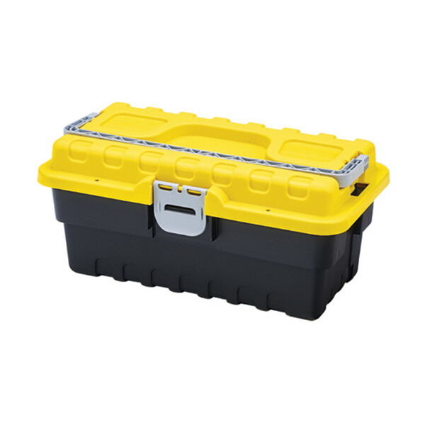 Ящик Compacto предназначен для хранения инструментов. Внутри ящика находится выдвижной лоток со съемными отделениями для мелких предметов. Во внутренней части крышки расположен съемный органайзер, с выдвижной железной подставкой, предназначенный для отверток, сверл и ключей разных размеров, у органайзера есть 4 прозрачных закрывающихся экрана, которые фиксируют предметы на своих местах. По бокам 2 замка-защелки. Корпус и крышка изготовлены из ударопрочного полипропилена, выполненных в черном цвете. Выдвижной лоток, органайзер, ручка, 2 замка выполнены в желтом цвете, материал пластик.