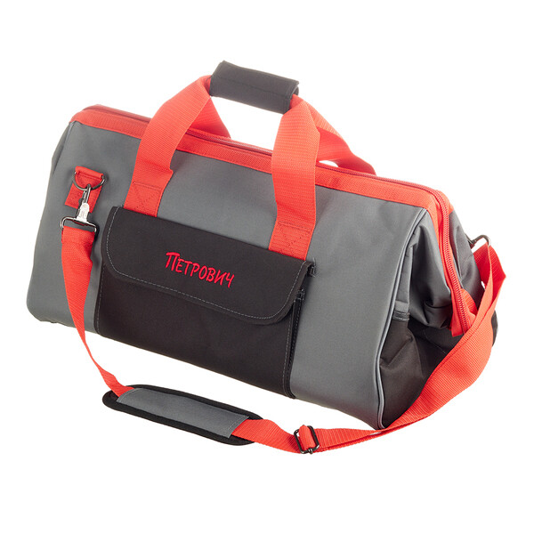 Предназначена для транспортировки и хранения различных строительных инструментов. Сумка изготовлена из нейлона, закрывается на молнию. Торцевые части проложены трехслойным поролоном, для безопасной переноски острых предметов. Ручки выполнены из цельных лент, крепления плечевого ремня имеют усиленную конструкцию. На дно установлены ножки из противоскользящей резины. Модель имеет 1 основной отдел, 14 внутренних и 8 наружных боковых карманов (1 большой карман – на липучке).