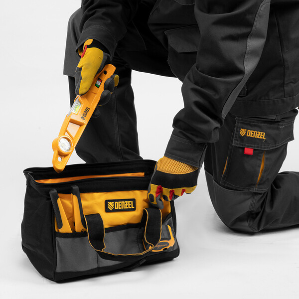 Сумка Denzel 90292 с 14 карманами, габаритами 305х190х195 мм, предназначена для хранения и транспортировки инструментов. Пригодится строителям, сантехникам, монтажникам и автовладельцам.