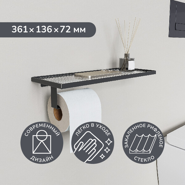 Оснащен полкой с отверстием под диффузор и полкой, что позволяет удобно размещать телефон, средства гигиены или небольшие элементы декора. Стильный и лаконичный дизайн держателя подойдет для любых интерьеров.
