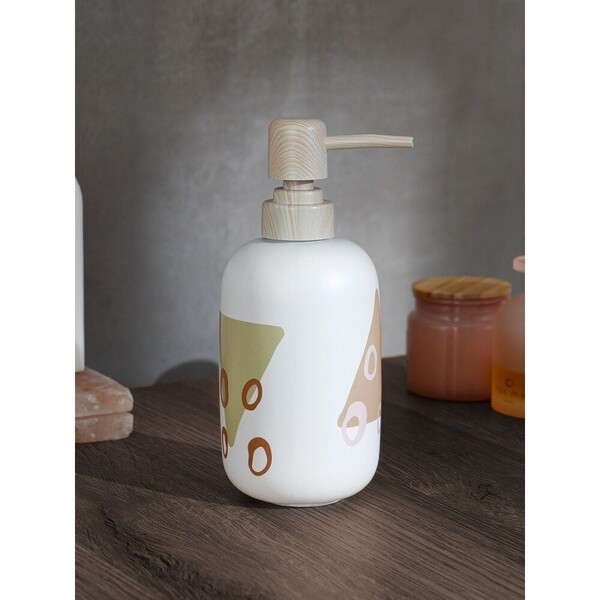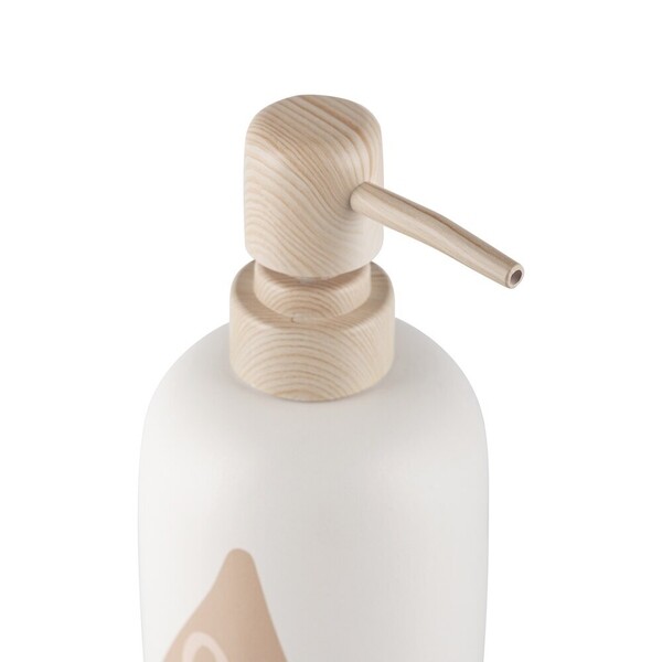 Дозатор для жидкого мыла – часть коллекции Reflection. Изделие из матовой белой керамики с пластиковой помпой под дерево и оригинальным дизайном в стиле абстракционизм. Простые понятные формы, универсальная цветовая гамма и немного наивные рисунки – аксессуар, который преобразит интерьер современной ванной.