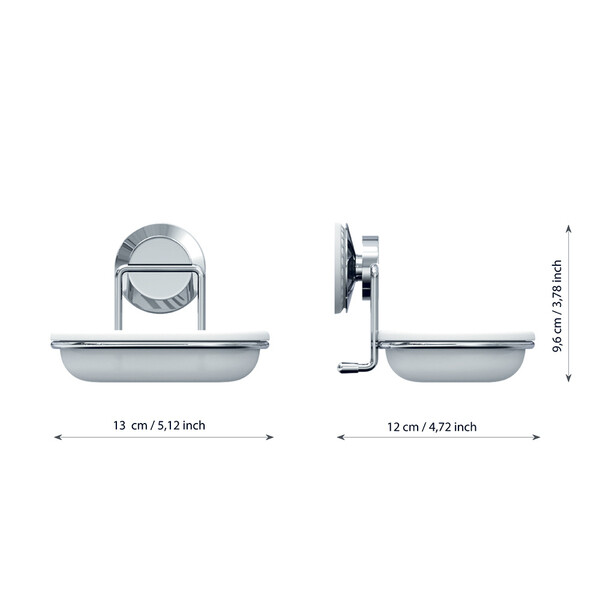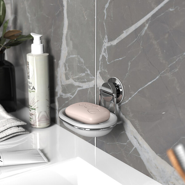Мыльница на присоске Fora Atlant. Она имеет классическую овальную форму и крепится к стене при помощи вакуумной присоски из натурального каучука. Система Push позволяет прочно зафиксировать аксессуар на стене, поэтому вам больше не придется ловить ускользающую мыльницу и искать, куда закатилось мыло. Пластиковая чаша и хромированный держатель не подвержены коррозии, а значит аксессуар будет долго украшать вашу ванную.