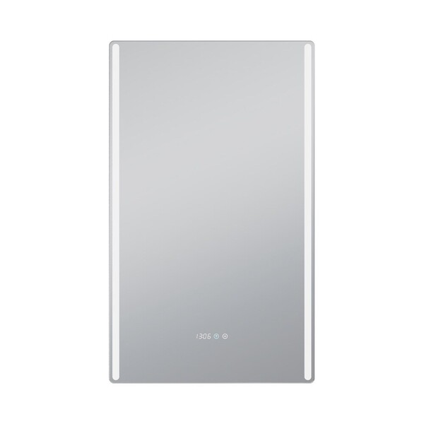 Зеркало имеет сенсорное управление, светодиодную подсветку, часы, а также функцию антизапотевания. Питание осуществляется от сети.