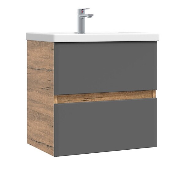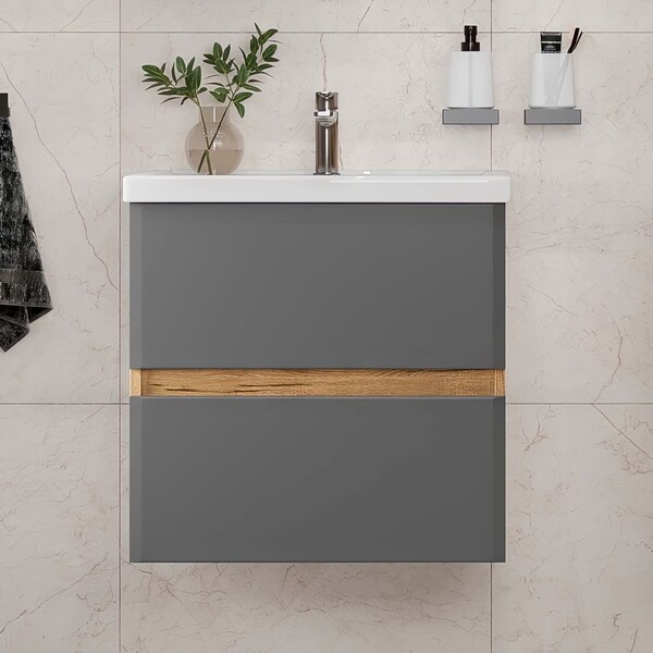 Тумба подвесная SanStar Graffa 60 с раковиной Фостер 60 для ванной комнаты выполнена в современном стиле. Для изготовления корпуса используется влагостойкий ЛДСП – покрытие матовое, фасад изготавливается из МДФ. Для покрытия фасада изделия используется высококачественная матовая пленка увеличенной толщины. Фурнитура – хром. Два выдвижных ящика с направляющими скрытого монтажа и доводчиками Boyard. В набор входит раковина Фостер 60, выполненная из санфарфора.