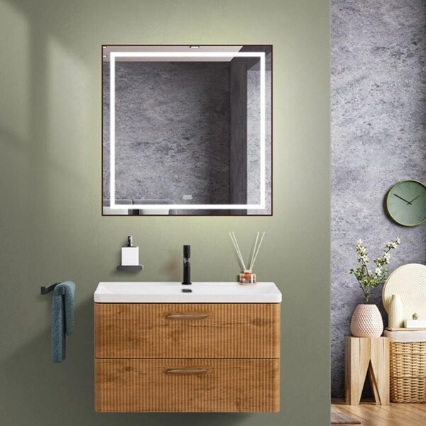 Тумба под раковину подвесная с двумя выкатными ящиками. База оснащена доводчиками скрытого монтажа с системой Soft close (плавного закрывания).
