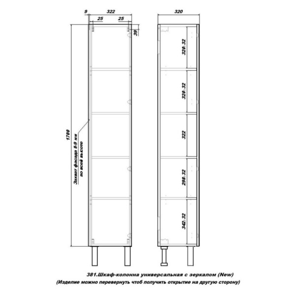Шкаф-пенал зеркальный для ванной комнаты производится на российском заводе, оснащенном высокотехнологичным европейским оборудованием под брендом SanStar. Под контролем отдела качества, с соблюдением ТУ и ГОСТ. Для изготовления корпуса и фасада используется влагостойкий ЛДСП, зеркало износостойкое. Фурнитура – хром. Петли с доводчиками Boyard. Количество полок, выполненных из ЛДСП, без учета корпуса мебели – 4. Одна дверца с доводчиками, которая может открываться вправо либо влево в зависимости от вертикального монтажа шкафа на стену. Шкаф можно повесить на стену либо установить на пол. В комплект входят крепления к стене и ножки. Товар доставляется в предварительно собранном виде, состоит из 1 места, надежно упакованного в пятислойный гофрированный картон. Размеры изделия могут отличаться +/-1 см в связи со спецификой производства. Пож...