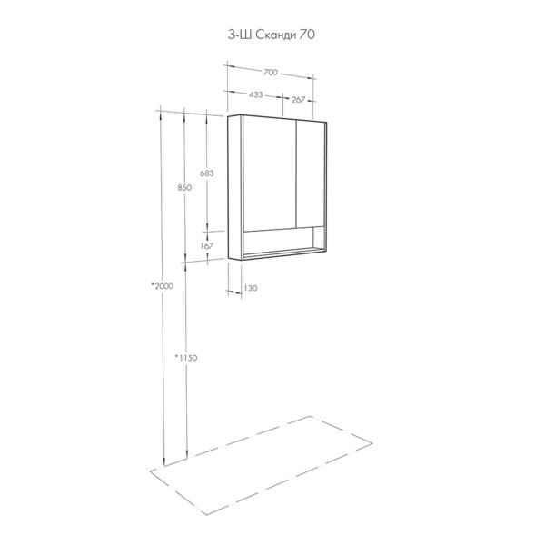 Предназначен для оборудования ванных комнат. Внутреннее пространство зеркального шкафа разделено на асимметричные секции, которые позволят хранить косметические средства различного объема и высоты. По желанию можно дополнительно приобрести светильник.
