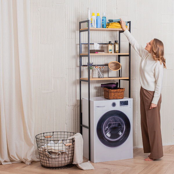 Открытое хранение – один из современных трендов в дизайне. Металлический стеллаж в стиле лофт будет отличным дополнением интерьера вашей ванной комнаты. Стильный и практичный стеллаж можно использовать как для хранения полотенец, косметических и гигиенических средств, так и для размещения элементов декора.