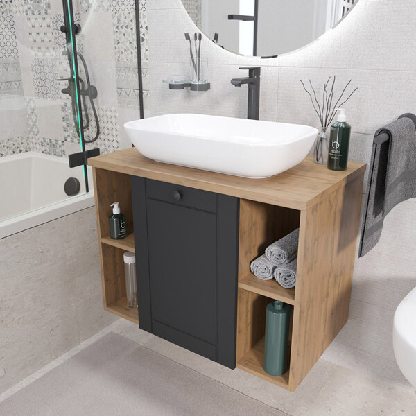 Подвесная тумба Organic удачно соединяет в себе тренды и функциональность. Серый матовый фасад добавляет в интерьер неуловимую динамику мегаполиса. Organic идеально вписывается в жизнь тех, кто ценит простоту и практичность, и любит атмосферу большого города. Материал фасада – МДФ, облицованная матовой пленкой ПВХ, светлый деревянный корпус из влагостойкой ЛДСП. Благодаря этому тумба надолго сохранит первозданный вид в условиях повышенной влажности ванной комнаты. В тумбе удобно организовать хранение. В полках можно разместить бытовую химию или средства личной гигиены. Подвесной тип монтажа расширяет пространство и облегчает уборку, также дает доступ для робота-пылесоса. Круглые ручки удобны в использовании, они добавляют шарма модели. А стильный образ тумбы завершает накладная раковина. Надежная немецкая фурнитура рассчитана на ...