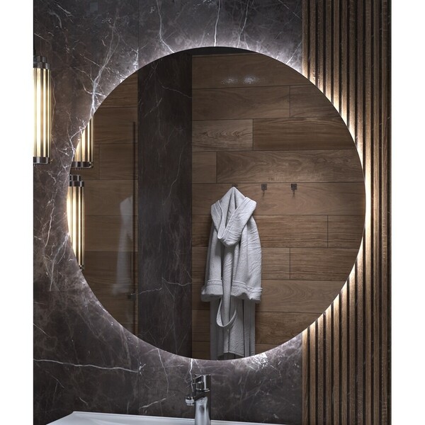 Зеркало имеет сенсорное включение или управление "взмах", светодиодную подсветку, классическую круглую форму. Питание осуществляется от сети.