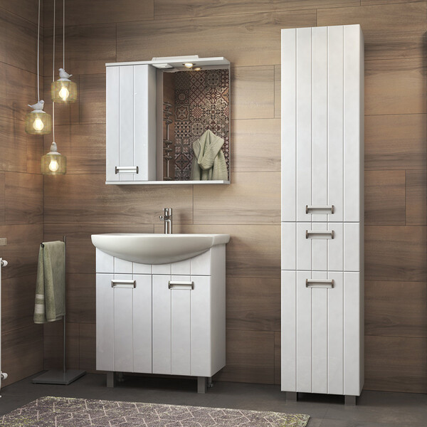 Предназначен для ванной комнаты. Имеет универсальные дверцы, которые могут открываться и в правую и в левую сторону.
