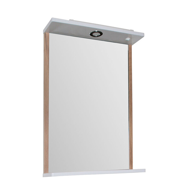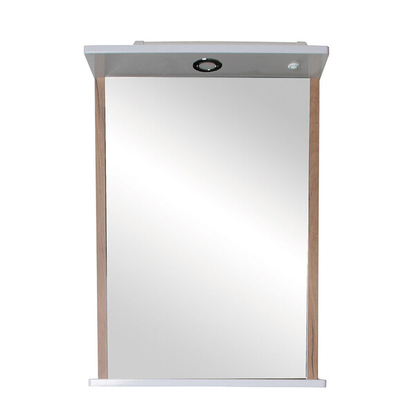Зеркало с подсветкой с полкой прямоугольное 46,5х72,5 см в раме белой/дуб золотой АСБ-Мебель Альпина