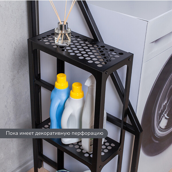 Стильную и практичную полку можно использовать как для хранения полотенец, косметических и гигиенических средств, так и для размещения элементов декора. Не привлекает к себе излишнее внимание, выглядит легкой, поэтому визуально не загромождает пространство.