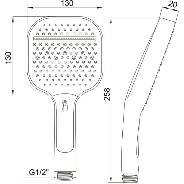 Трехпозиционная лейка душевая Petra. Типы потока струи – душ, водный туман, массаж линейный. Удобное кнопочное переключение потоков.