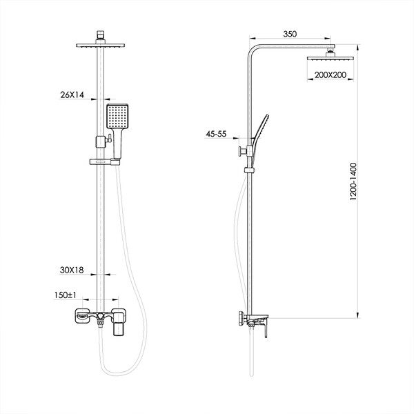 Душевая система с верхним душем и ручной лейкой со смесителем в комплекте для установки в душевой кабине или над ванной.