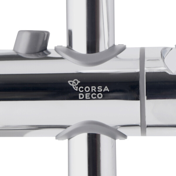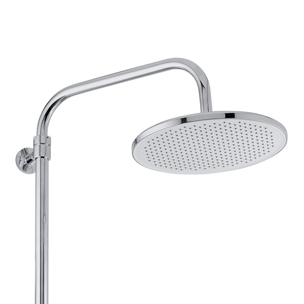 Душевая система с верхним душем и смесителем цвета хром сочетает в себе современный дизайн и высокое качество.