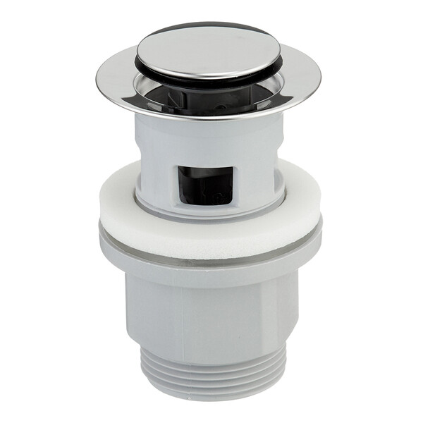 С отверстием для подключения перелива, позволяющего выпускать воду из раковины при ее переполнении через отверстие в нижней части перелива. Система клик-клак – управляется нажатием на пробку слива. Покрытие устойчиво к коррозии, появлению царапин, сколов и потускнению. Круглая заглушка в цвете хром.