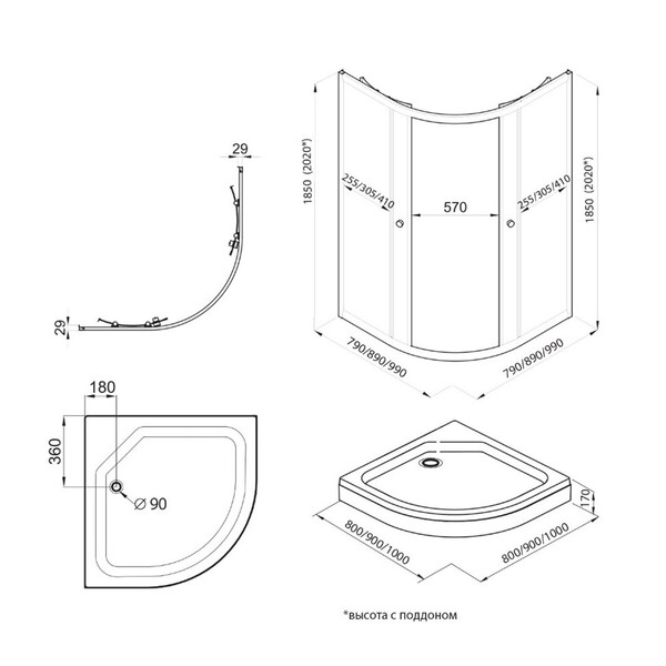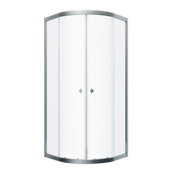 Душевое ограждение полукруглой формы с двумя раздвижными дверцами. Алюминиевый профиль, покрытие хром. Имеет возможнось установки на поддон или на пол.