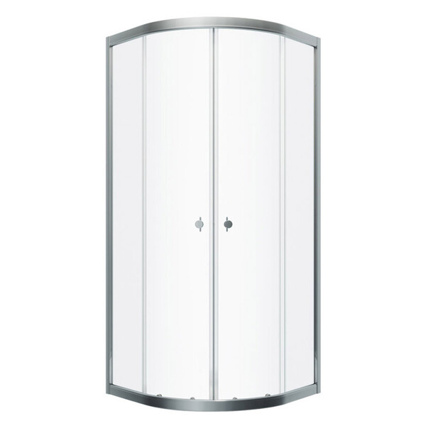 Душевое ограждение полукруглой формы с двумя раздвижными дверцами. Алюминиевый профиль, покрытие хром. Имеет возможнось установки на поддон или на пол.