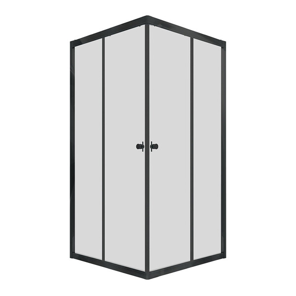 Душевое ограждение квадратной формы с двумя раздвижными дверцами. Алюминиевый профиль, цвет черный. Имеет возможность установки на поддон или на пол.