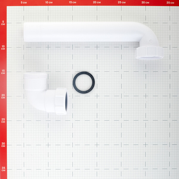 Отводная труба под 90° в комплекте с отводом на 90° для отвода сифона к стене.