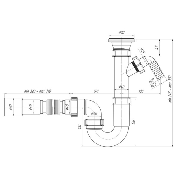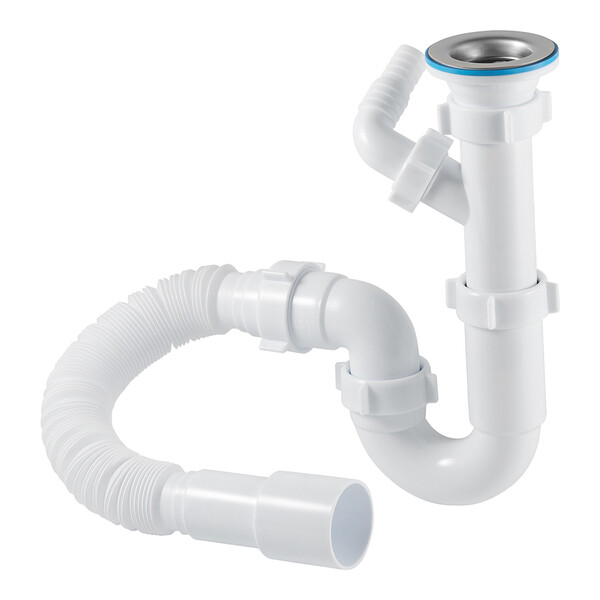 Сифон D1015 имеет отвод для подключения стиральной машины, гибкую трубу 40х40/50. Благодаря своей форме прямоточный сифон имеет высокую скорость слива сточной воды, а также самый простой способ прочистки без демонтажа. Сифон прост в установке и выполняет свою главную функцию – формирование гидрозатвора для отсечения неприятных запахов из канализации.