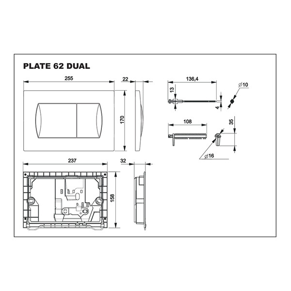 Кнопка слива для инсталляций Roca с двумя режимами слива воды ведущего мирового бренда Roca. Выполнена из высококачественного ABS-пластика. В комплект входит кнопка слива, рамка под клавишу, крепежные элементы и толкатели сливного механизма инсталляции.