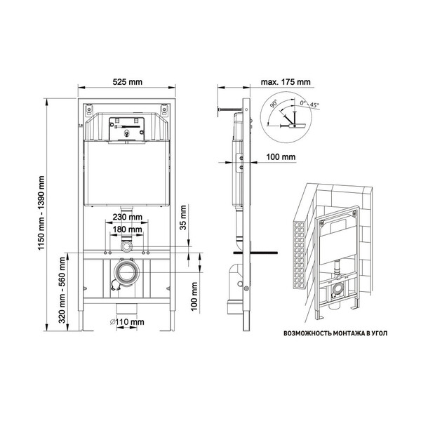 | Расстояние между крепежными шпильками для унитаза, мм | 180, 230 |