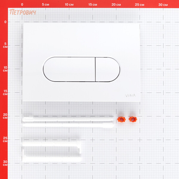 Механическая клавиша смыва имеет два режима и пластиковый корпус. Подходит для использования со встраиваемыми инсталляциями Vitra V-Fix Core. Размеры – 244х165х8 мм. Гарантия 5 лет