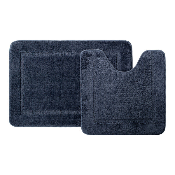 Набор из двух мягких ковриков для ванной глубокого синего цвета с плотным невысоким ворсом (1 см), очень приятных на ощупь. Ворс из микрофибры отлично держит форму, легко чистится и быстро сохнет. Коврики предназначены для ванной и для туалета (маленький коврик имеет вырез под унитаз). Основа из экологичной термопластичной резины (TPR) позволяет коврикам не скользить на гладком и влажном кафеле. Подходят для использования в помещениях с теплыми полами. Благодаря современным влагостойким материалам и качественной обработке краев, коврики не потеряют яркости красок, не обветшают и надолго останутся привлекательными, как в день покупки. Разрешена деликатная стирка при температуре до 40°С с жидким моющим средством, не сушить на батарее, избегать солнечных лучей.