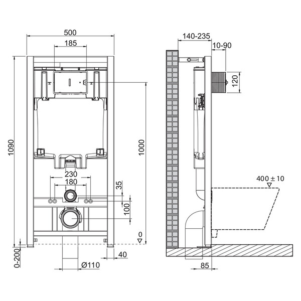 | Расстояние между крепежными шпильками для унитаза, мм | 180, 230 |
