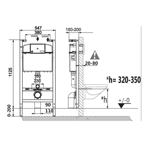 | Расстояние между крепежными шпильками для унитаза, мм | 180, 230 |